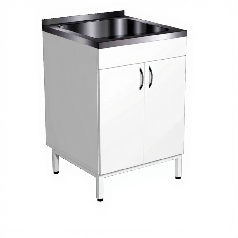 Модуль с мойкой СТм-1 — это компактное и функциональное решение для оборудования рабочих мест в медицинских кабинетах, процедурных и лабораториях. Модель сочетает прочный металлический каркас, корпус из ЛДСП, одночашевую мойку из нержавеющей стали и вместительную двухдверную тумбу.