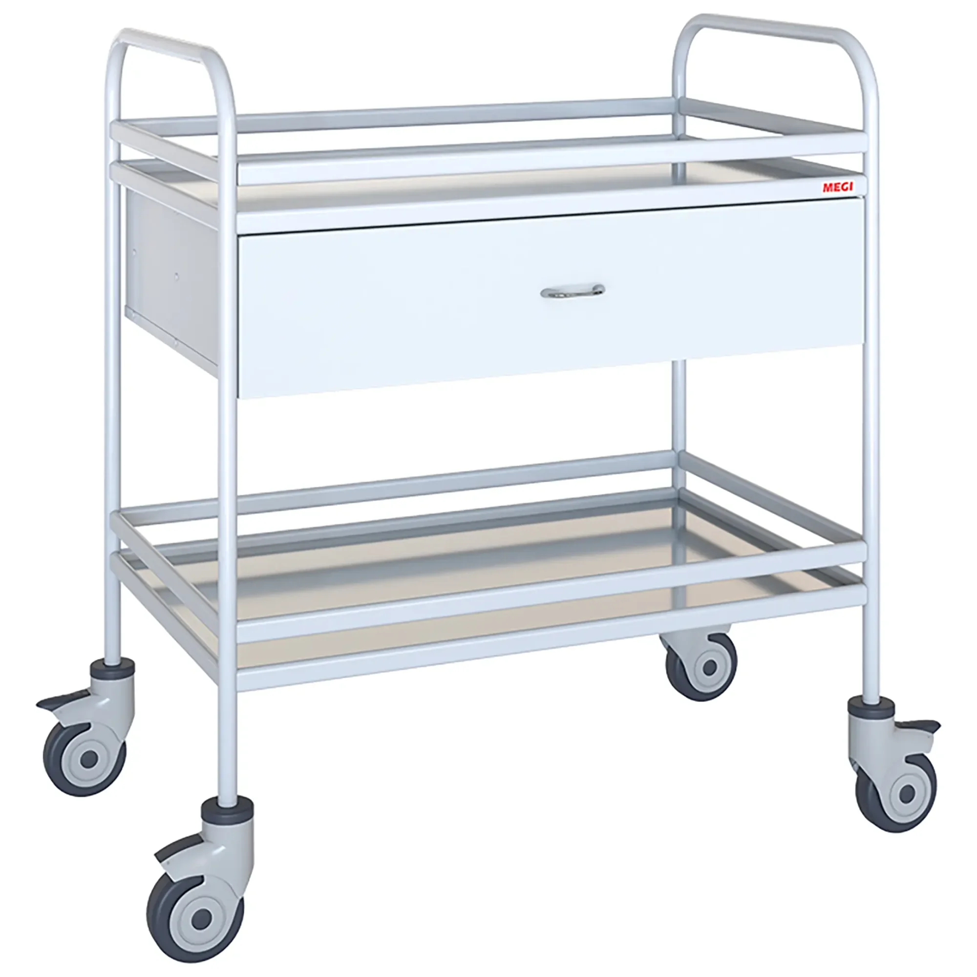 • каркас и ящик столика покрыт экологически чистым, эпоксидным полимерно-порошковым покрытием, устойчивым к обработке всеми видами медицинских дезинфицирующих и моющих растворов;