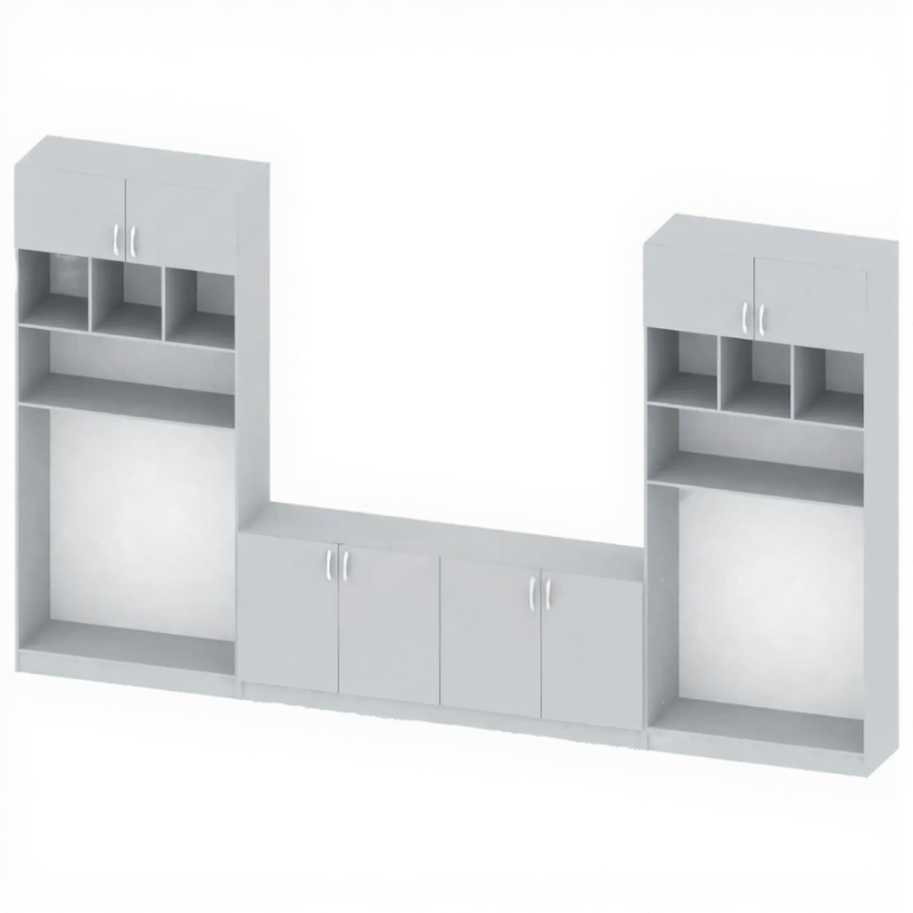 - Нейтральный и строгий внешний вид — лаконичный дизайн делает стеллаж уместным в любом служебном или учебном помещении, не отвлекая внимания от его содержимого.