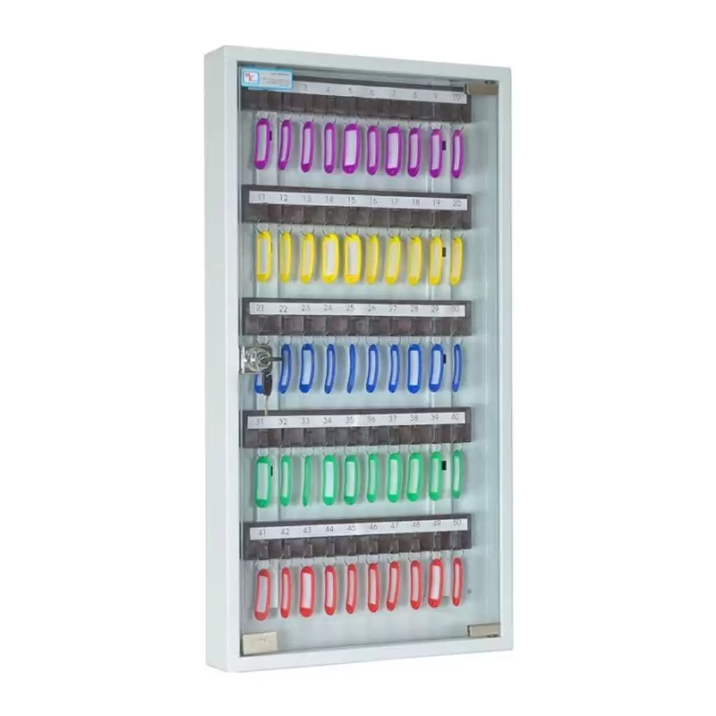 - Универсальная вместимость для отделов и постов — система рассчитана на 50 ключей, что идеально подходит для организации хранения в отделе, на посту охраны, в диспетчерской или службе эксплуатации здания, где требуется поддерживать порядок для значительного количества ключей.