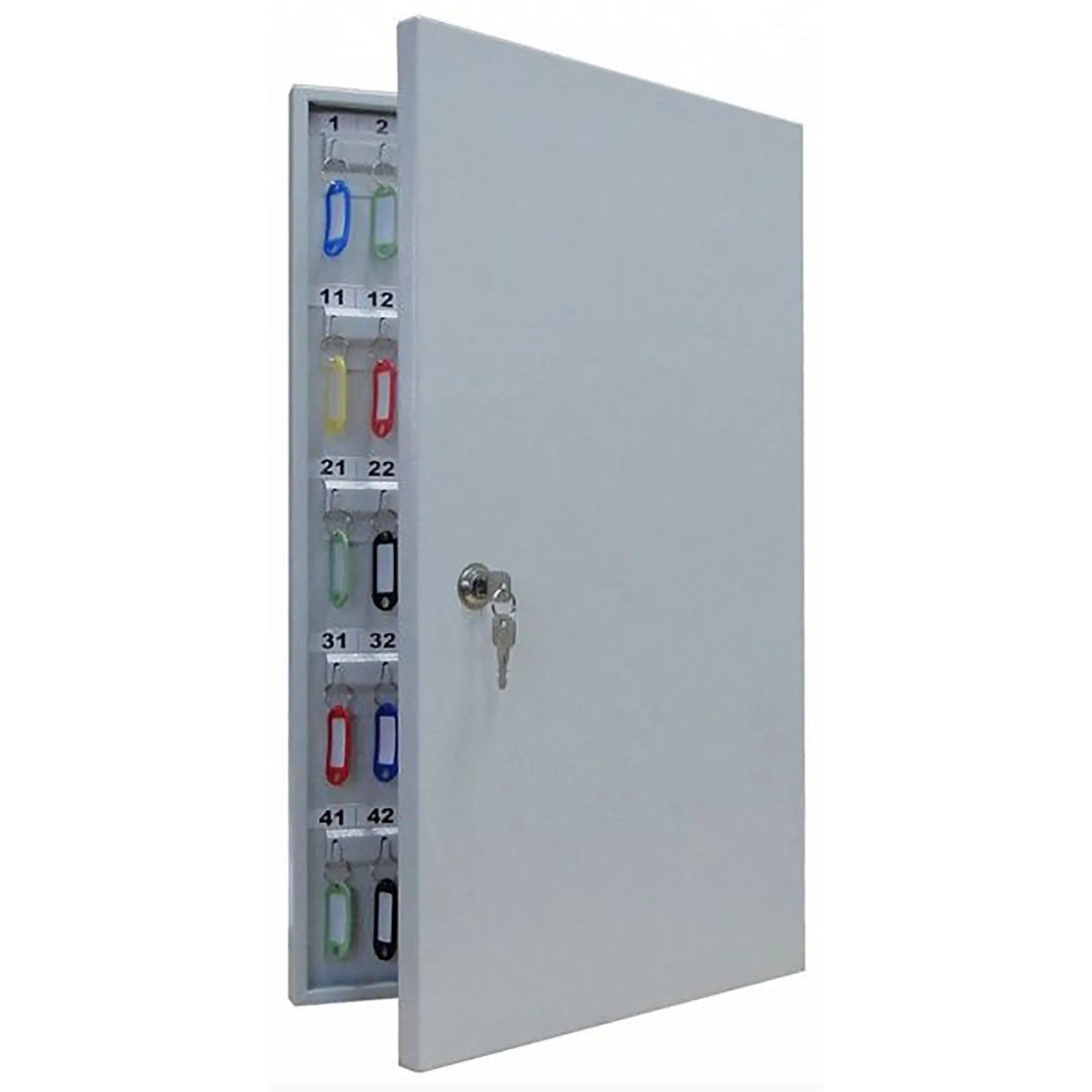 - Четкий контроль и простой учет — система с пронумерованными брелками и соответствующими ячейками позволяет легко идентифицировать каждый ключ, вести его учет в журнале и контролировать, кто и когда его получил или вернул. Это исключает путаницу и обеспечивает ответственность персонала.