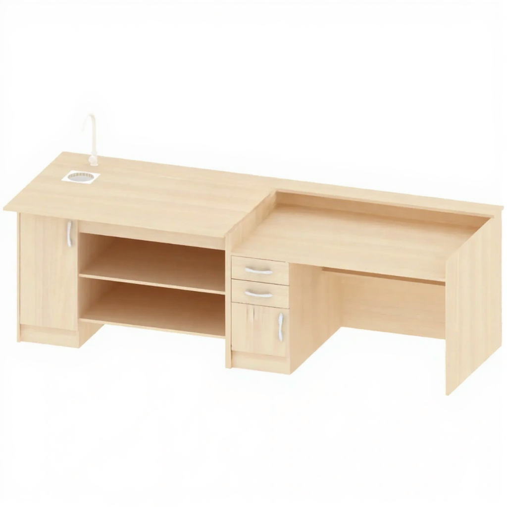 - Встроенная мойка — позволяет проводить лабораторные работы и опыты непосредственно на рабочем месте.
