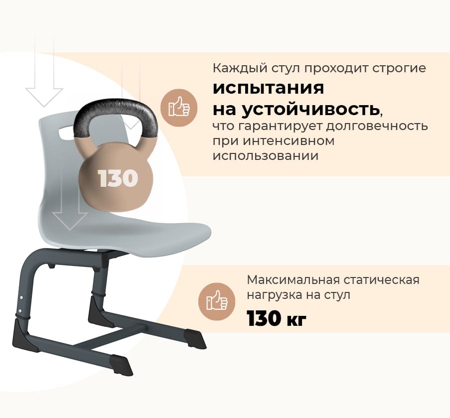 • Пластиковое сиденье и спинка — лёгкие, долговечные и легко очищаемые поверхности.