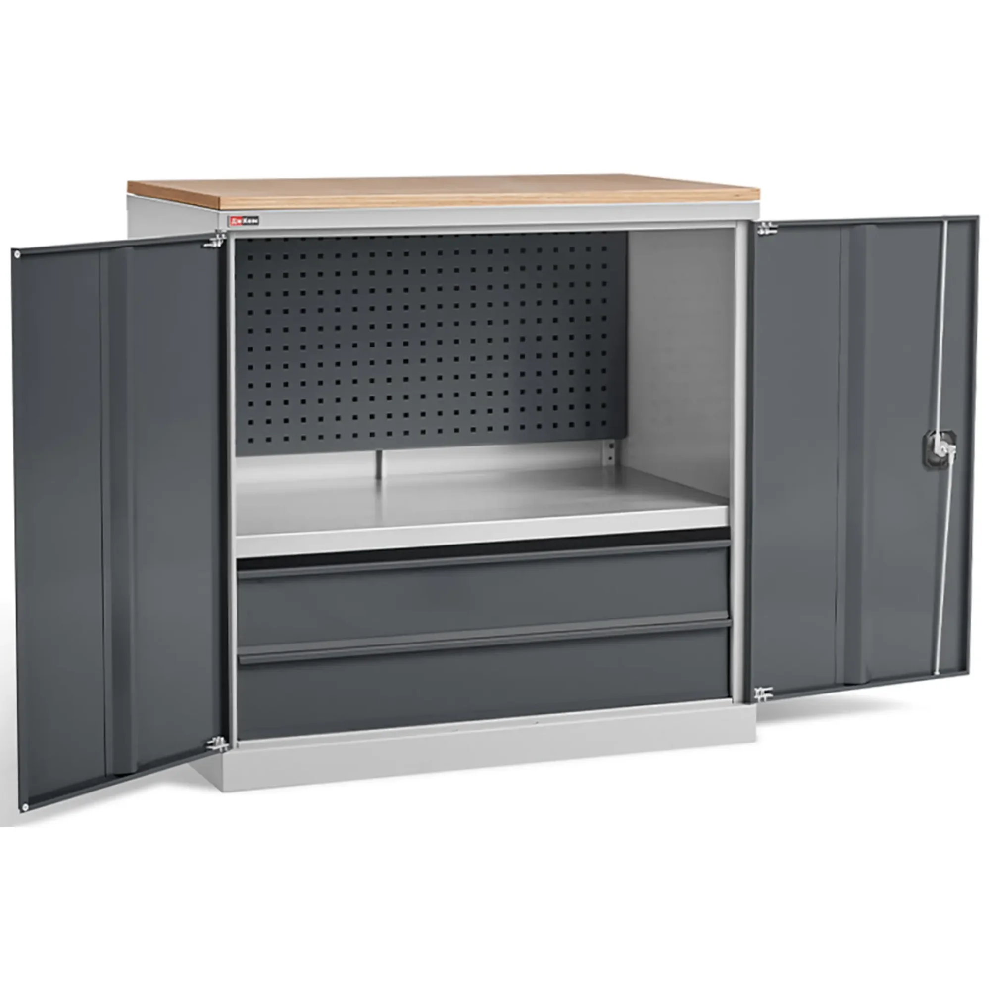 - Универсальность хранения — модель подходит для хранения широкого спектра слесарного, монтажного и измерительного инструмента, а также может использоваться для размещения расходных материалов и мелких запасных частей. Внутреннее пространство можно адаптировать под конкретные нужды с помощью дополнительных аксессуаров для перфорированной панели.