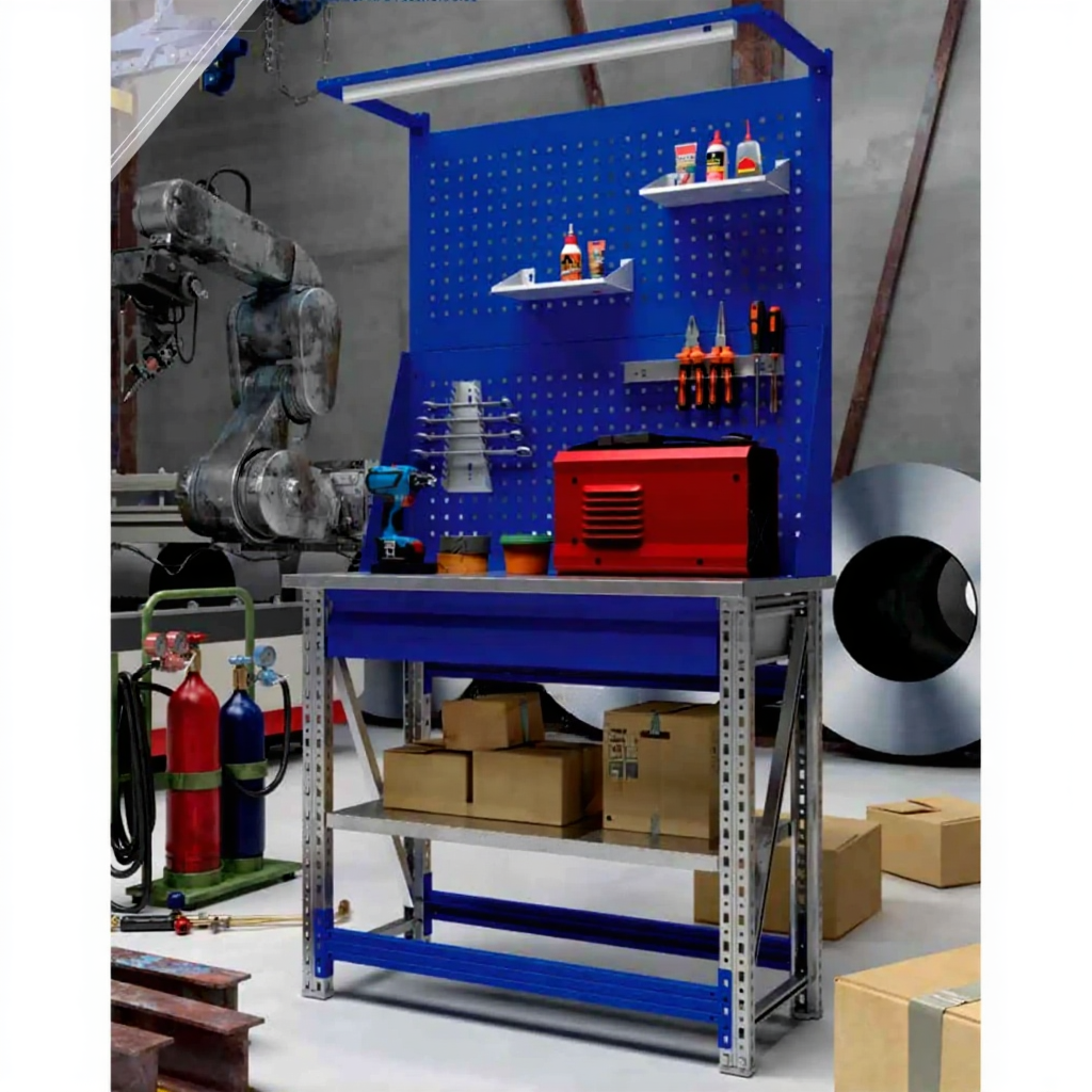 - Компактные размеры — столешница 1000х500 мм позволяет разместить верстак даже в небольших помещениях.