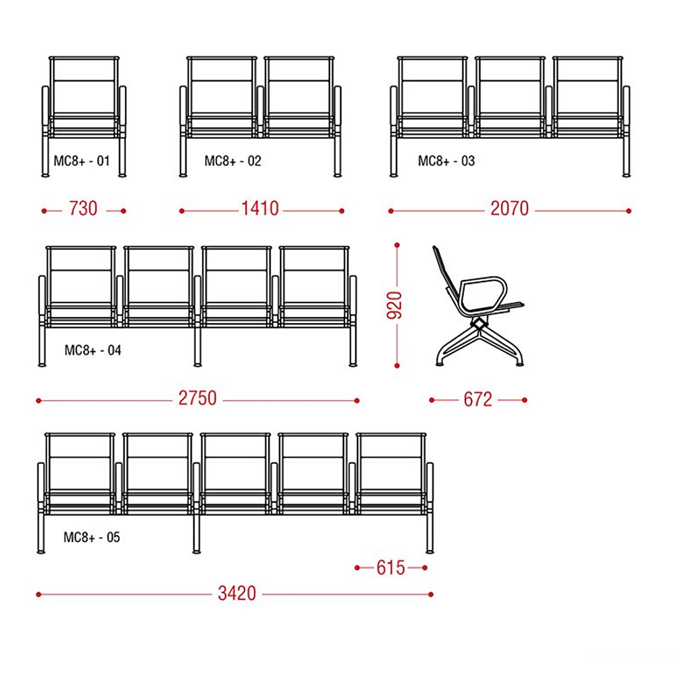 Многоместная секция предназначена для эксплуатации в зонах ожидания общественных мест с большой проходимостью: вокзалах, аэропортах, холлах административных зданий и пр.
