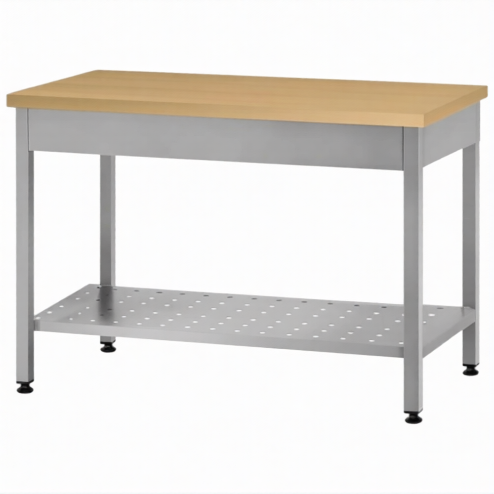 Стол кондитерский СПРп 860х1500х600 «Profi Inox», на 6-ти ногах, бук/40 (полка перфорация)