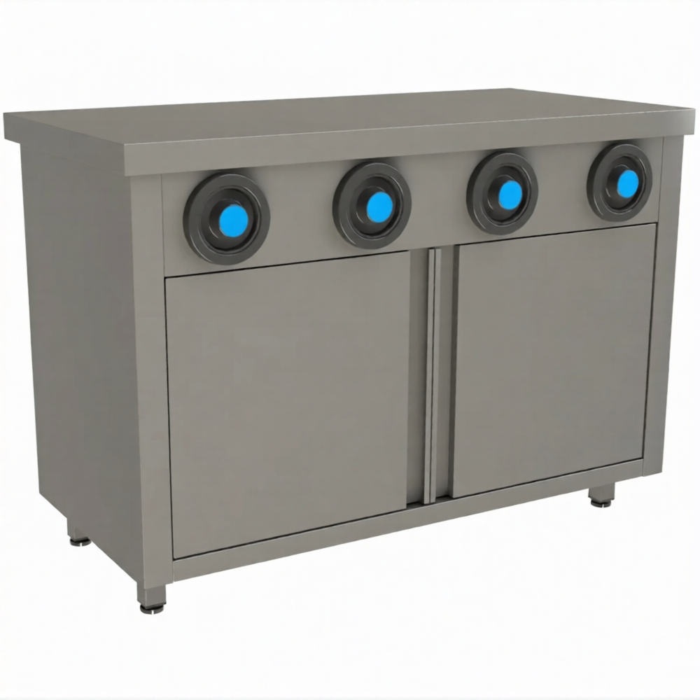 Стол-тумба с диспенсерами для стаканов СПЗРД4-12/7-Б разработан для применения на предприятиях общественного питания любого формата.