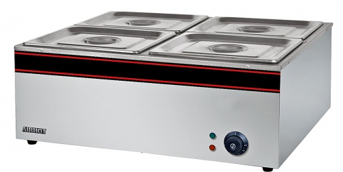 Мармит AIRHOT BM-4 используется для поддержания блюд в горячем состоянии. Это оборудования прекрасно подойдет для комплектации линий раздач малых и больших заведений общественного питания, а также тепловых блоков горячих цехов и ресторанов. Мармит выполнен из нержавеющей стали, что обеспечивает оборудованию защиту от коррозии и долговечность.
