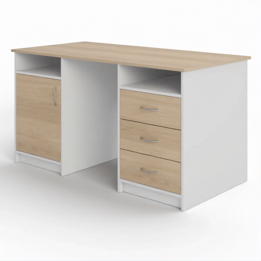 Стол рабочий СрТ-14 (1400х700х750) с двумя тумбами (корпус ЛДСП белый, столешница ЛДСП дуб сонома) предназначен для оснащения кабинета врача в медицинских учреждениях, кабинетов лабораторий.