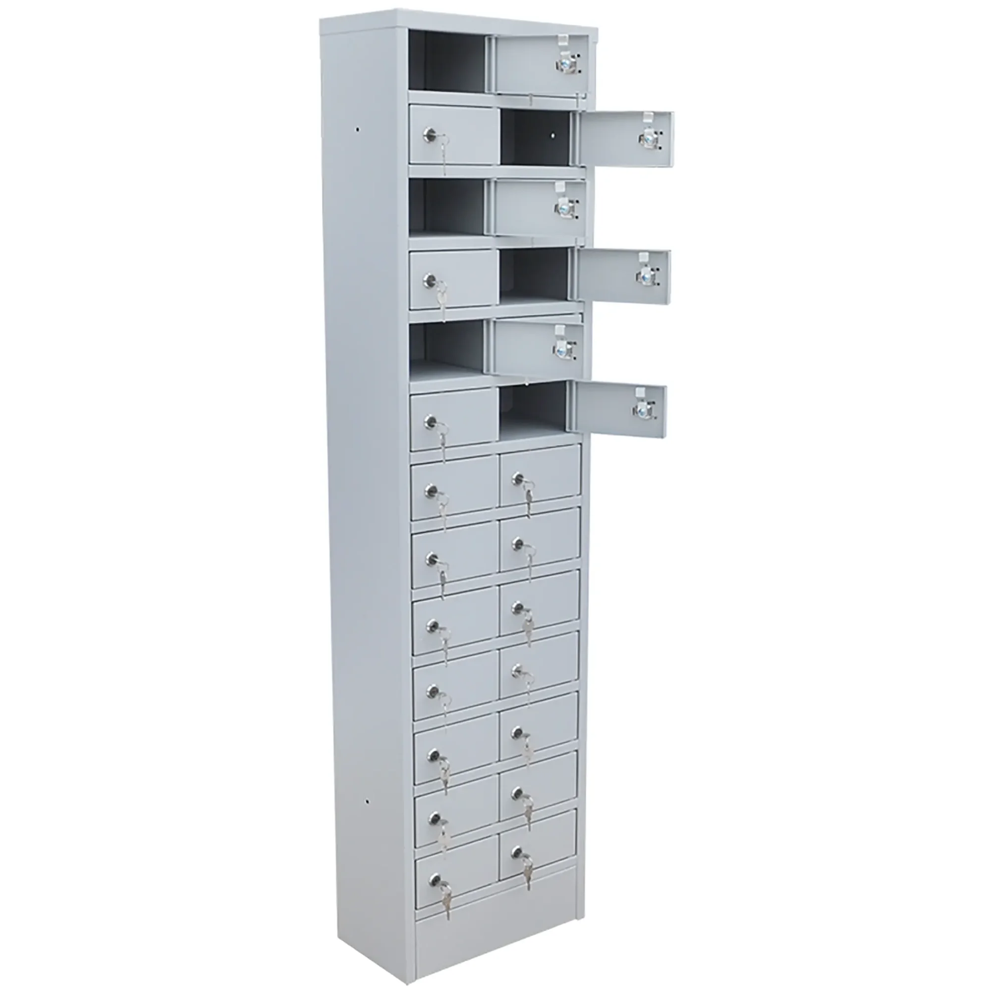 - Оптимальная вместимость для средних групп — шкаф предоставляет 26 индивидуальных запирающихся ячеек, что идеально соответствует численности среднего школьного класса, учебной группы в колледже или среднего офисного отдела. Это позволяет централизованно хранить устройства всего коллектива, обеспечивая единый подход и дисциплину для всех.