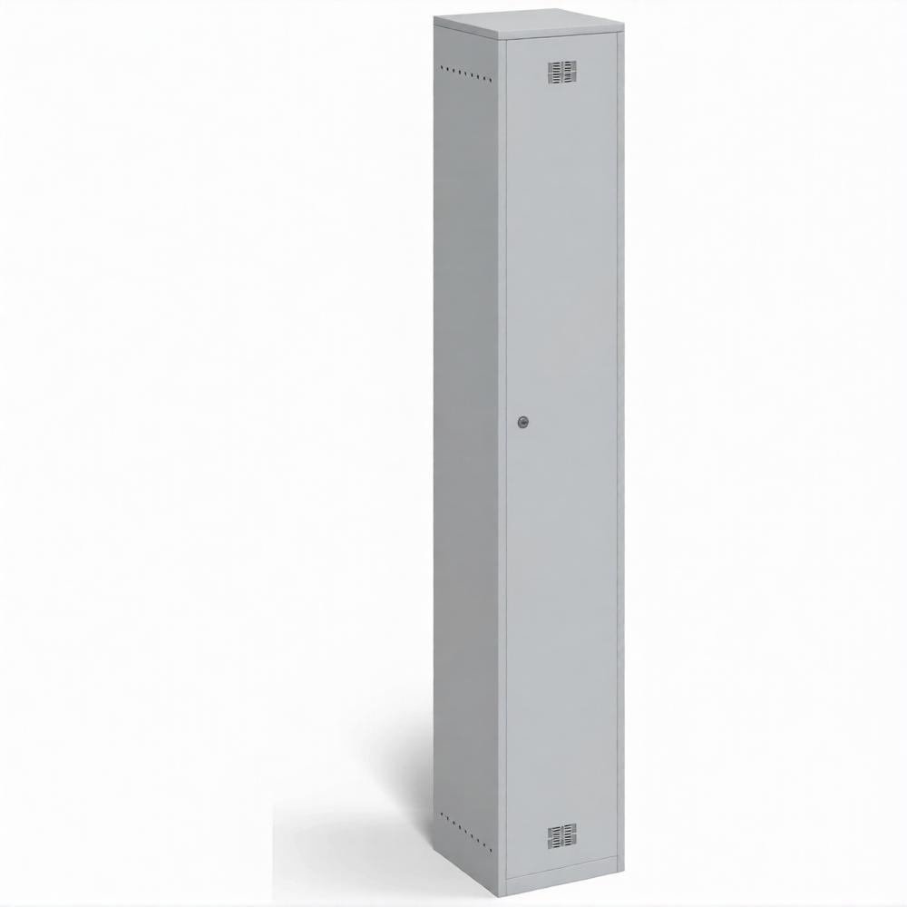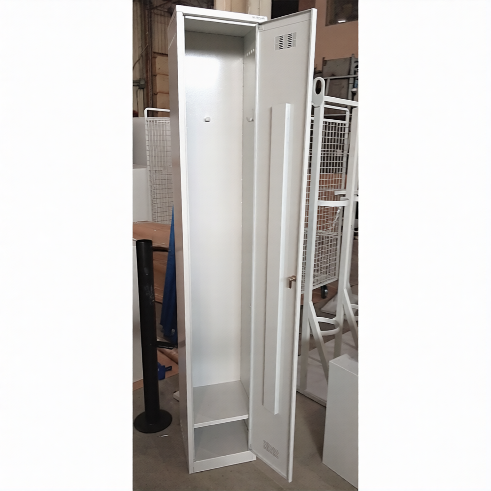 - Шкаф для хранения одежды окрашен порошковой краской серого цвета (RAL 7035), шкаф для медицинских учреждений может быть окрашен белой краской, устойчивой к моющим средствам.