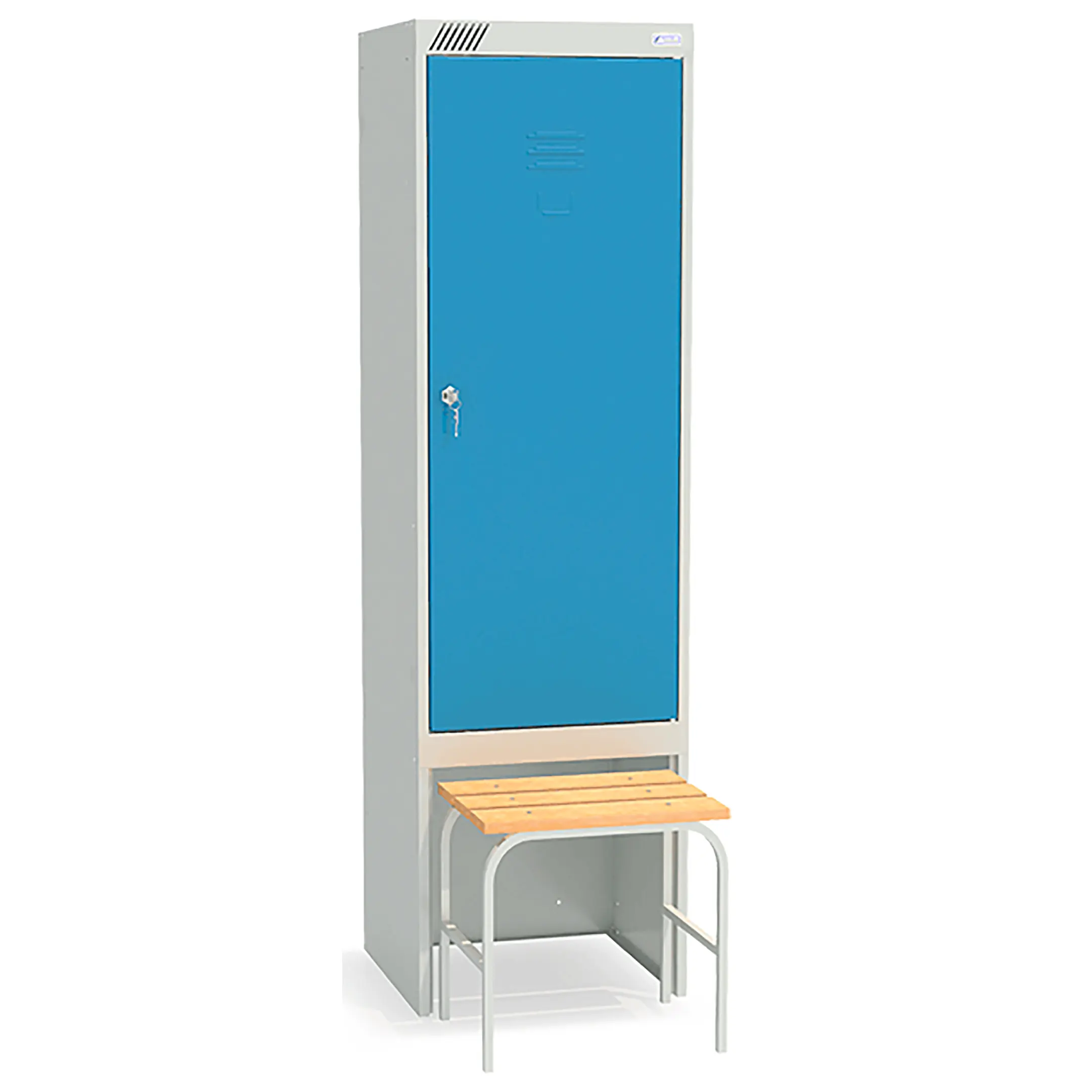Обратите внимание - данный шкаф поставляется окрашенным в серый цвет. Шкаф с синими дверцами можно приобрести под заказ (сроки доставки уточняйте у менеджера).