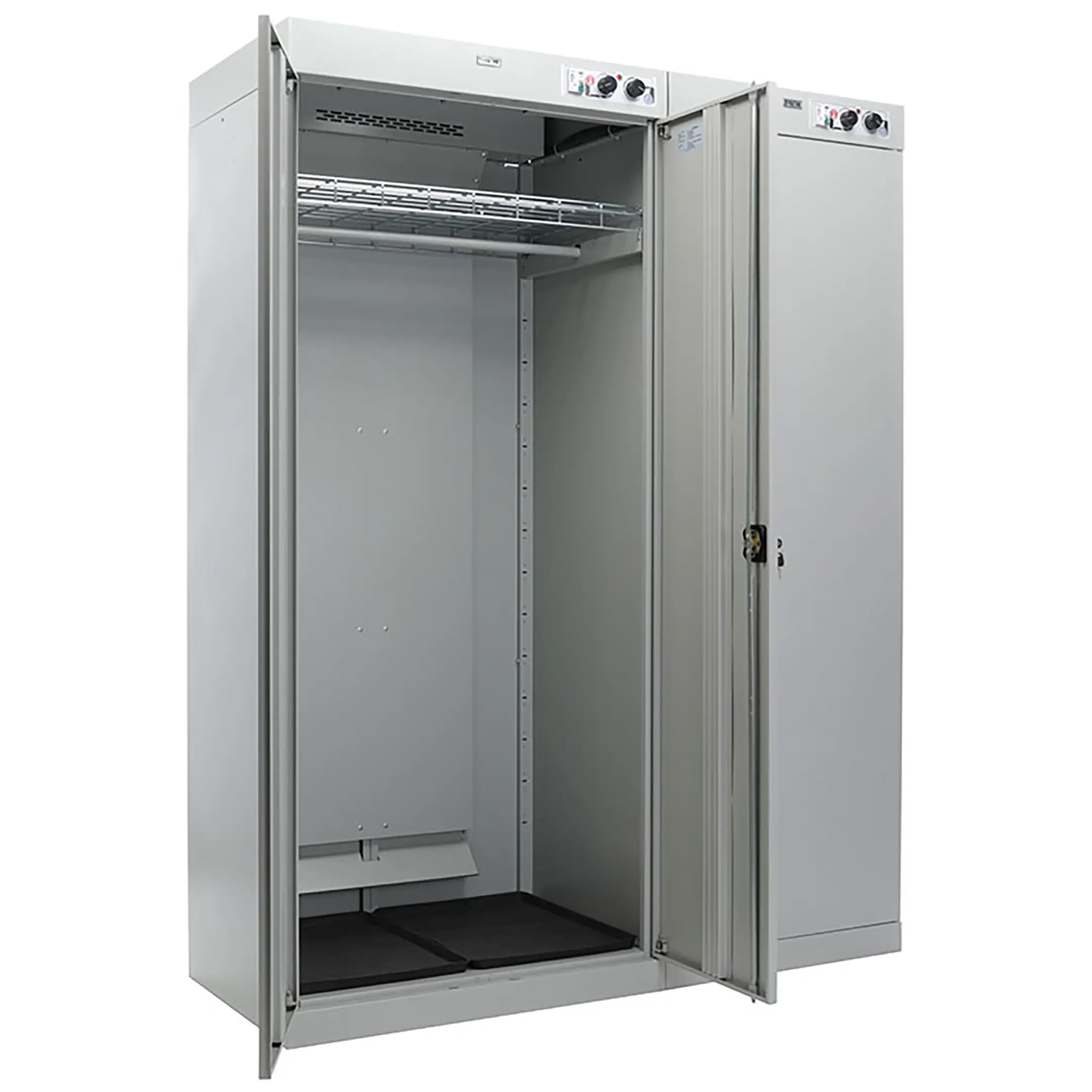 - Универсальность применения — шкаф подходит для сушки различных типов изделий: рабочей и спортивной одежды, спецодежды, обуви, полотенец и инвентаря, что делает его многофункциональным решением для разных сфер деятельности.